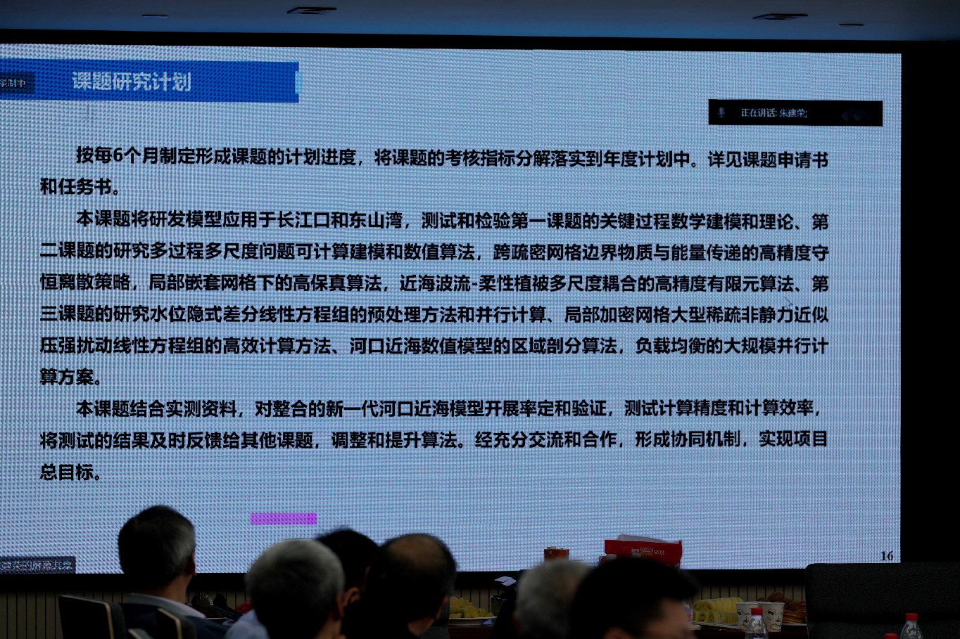 叶东教授对项目总体情况进行了介绍。之后,四位课题负责人叶东教授、侯延仁教授、夏长水正高级工程师、朱建荣研究员分别介绍了各个课题情况。